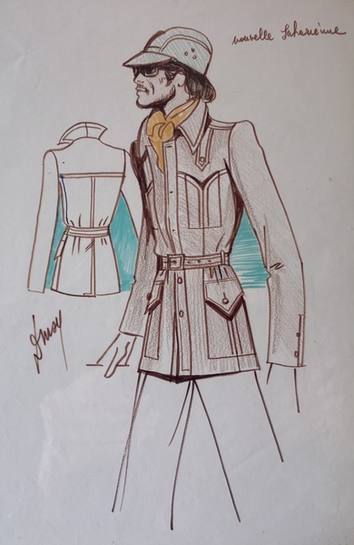 The new safari and Sahara look became fashionable at the end of the sixties and early seventies. Introduced by Yves St. Laurent at a time when also the so-called pret a porter collections were introduced.